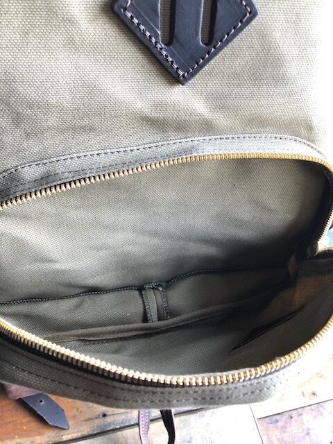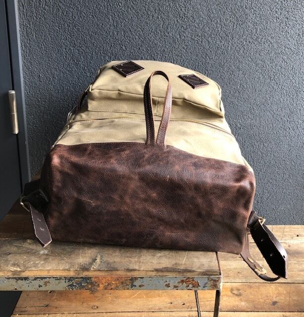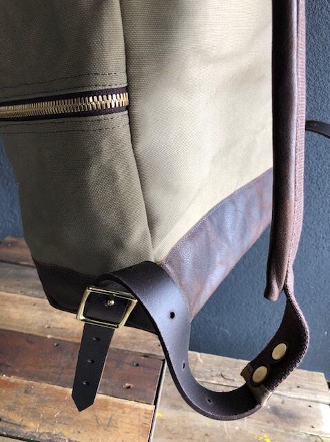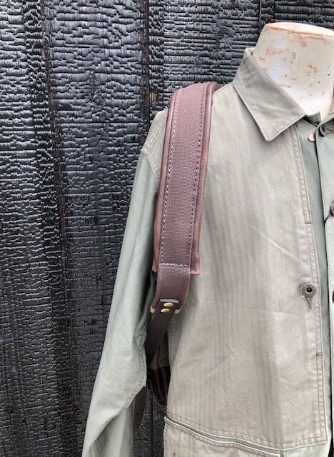 ワックスコットンキャンバス製レザーで覆われたショルダーストラップ、
