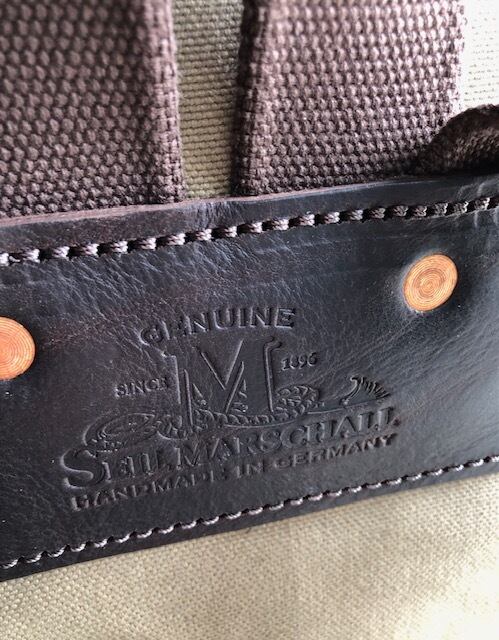 厚手のサドルレザーを使用したレザーワッペンとストラップ、