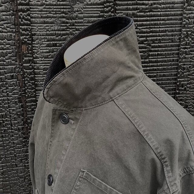 しっかりと織られた10.5オンスのキャンバス地から作られたこのジャケットは、風や薮、飛んでくる木片などにも決して負けません。コーデュロイの裏地が付きの襟と袖口、ヴィンテージのハンティングジャケットから踏襲したレイヤードポケットは、アウトドアから街歩きまで様々な活用が可能です。