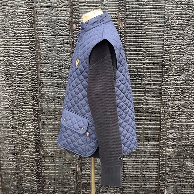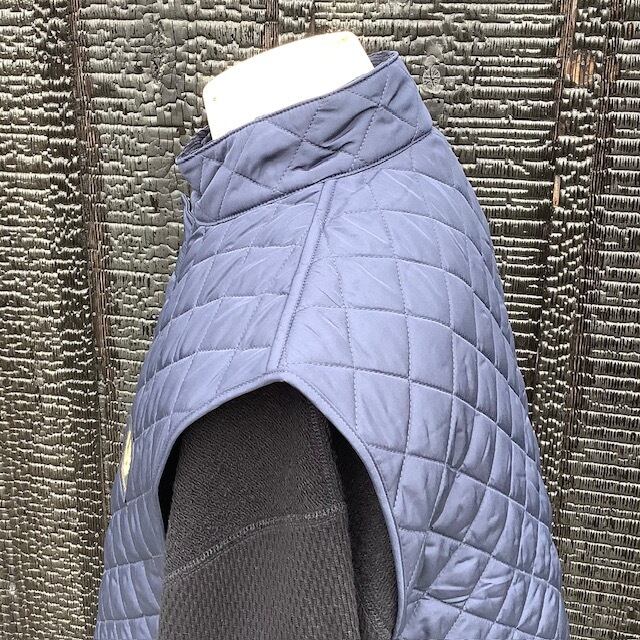 ダイヤモンドキルティングのパッド入りベスト。トライアルマスター ジャケットとフィールドマスター ジャケットにスナップ留めして、暖かい中間層を追加できます。