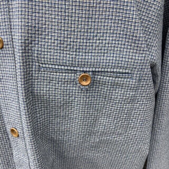 ボタンは全てヴィンテージボタンを使用しており、それを一つずつ工場で手付けしております。よって、機械付けより取れやすい場合がございます。紛失された場合でも、ヴィンテージボタンのため、同じボタンを提供することができませんので、早いうちに補強することをお願いしております。また、プラスチックのボタンと違い、高温プレス機などによりクリーニングで割れる場合がございます。クリーニングをお出しになる際はクリーニング店にご相談ください。替えボタンをつけていませんが、デザイナーの意図として、お手持ちの違うボタンをつけて、自分なりのアレンジとしてカスタマイズして頂きたいと、提案しております。父や母、祖父や祖母のお下がりを、補強して長く着続けるヨーロッパの昔のように。そこには、お手元に渡った時点ではまだ、完成度としては8割で、残り2割はお客様に着ていただくことで完結させていただきたい、というデザイナーの希望がございます。ご理解を頂ければ幸いです。
