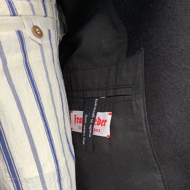 旧式の織機の廃棄と工場閉鎖によりジャーマンレザーの生地が作れなくなったことで一時生産を休止していましたが、 かなりの要望があり、なんとか期待にこたえるためにデザイナーが探しまわり、とうとう作り上げた生地がこのジャーマンレザーです。 ドイツ国内のファクトリーで、また、今できる限りの状況下で織り上げた生地は、これまでのものと同じとは言えませんが、充分に高密度の織りが出来上がり、自信をもって紹介しています。 こちらの2Bジャケットはフランクリーダーの定番デザイン。革のように柔らかくなるジャーマンレザーは、長く、このアイテムを育てて、アタリや色落ちに至るまで楽しんでください。