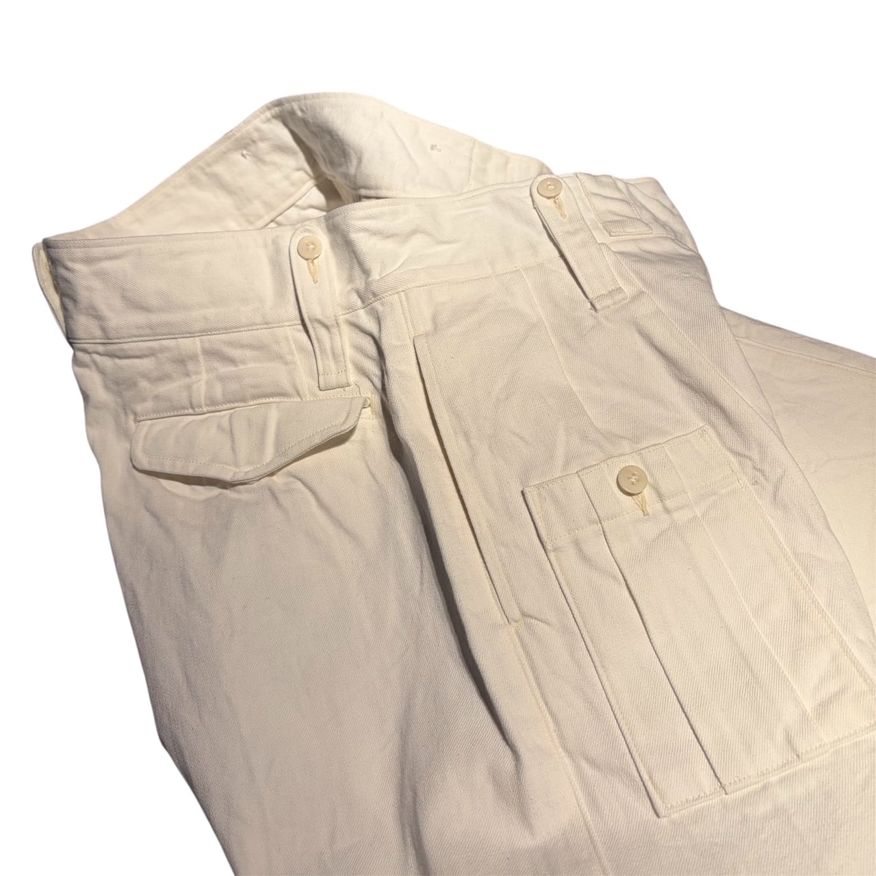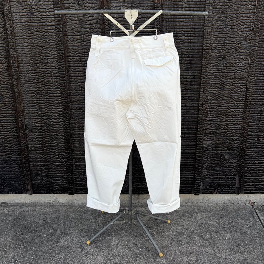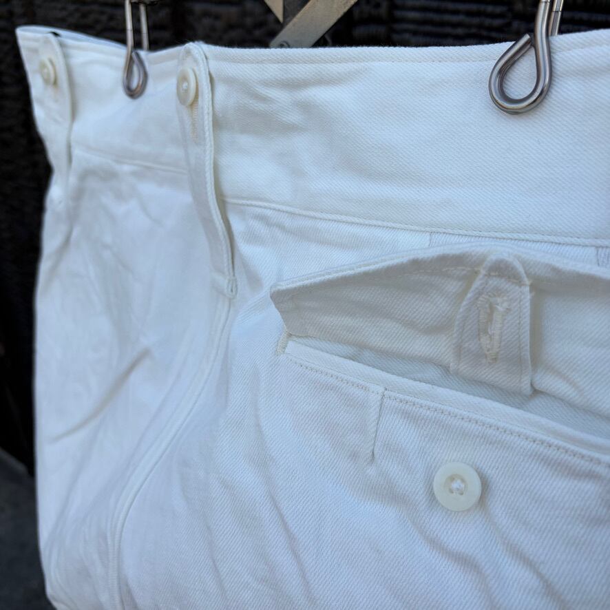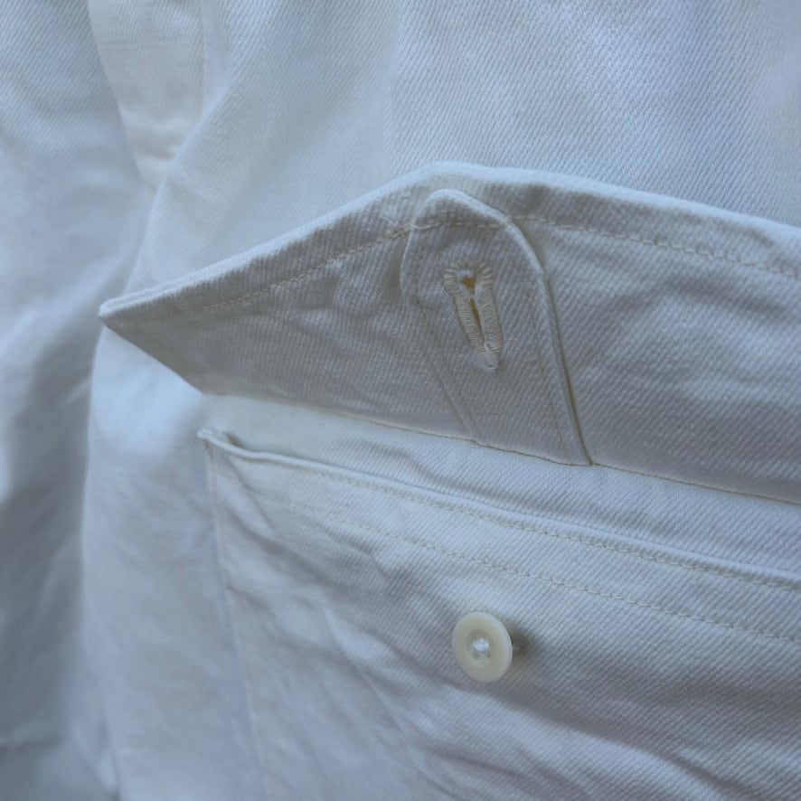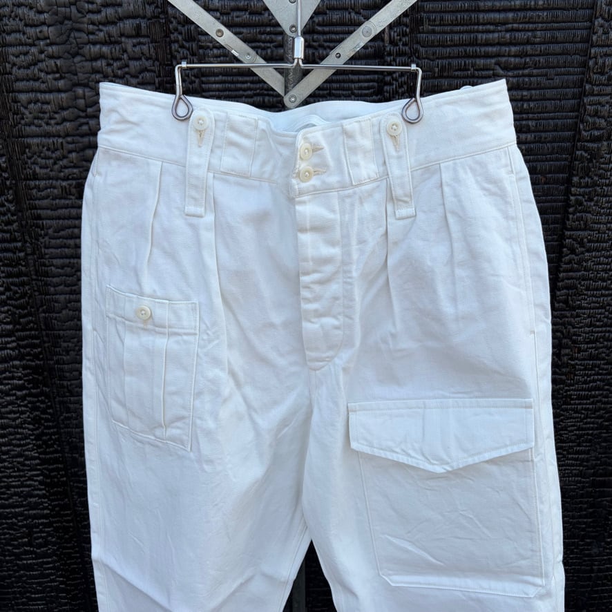 英国軍のミリタリーパンツをベースにしたブリティッシュアーミーパンツのホワイトデニムバージョン。機能的なディテールはそのままに、クリーンなホワイトデニムを採用することでミリタリー由来の力強さと軽快さを両立しました。