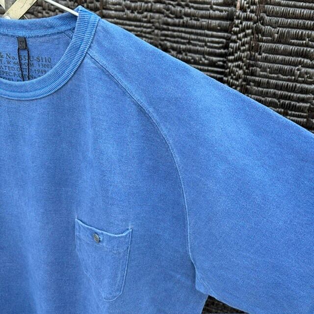 9.5オンスの丸同Tシャツが登場。こちらはピグメント染め。反応染料と異なり染色粒子が大きいため色落ちなどの経年変化が早い事が特徴。