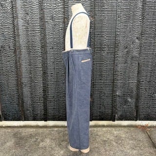 こちらの 1TUCK WIDE TROUSERS は平面やトルソーでは度肝を抜くようなワイドな印象ですが、生身の体ではどこかスッキリと程良く、まるで「牙を剥いた羊」の様。フォルム的にサスペンダーで吊ってみたいと思った第一印象通り吊っても良し、ベルトでスッキリと履いても良しな驚きを隠せない一本。