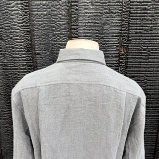 天然染料で染め上げられた、リネン100%ヘリンボーン織りの表情とネップが仲睦まじい着丈の長いシャツは、上から襟は大きくも小さくもなく、やさしい角度で、しっくりくる台襟。体の正中からやや右側にオフセットされたジップの程良い重さを活かした羽織りの美しさは際立ち、開閉具合も体のサイズ、体感温度、重ね着具合などと相談しながら自由に帳尻を合わせることのできる新鮮な一着。スリット型のサイドポケットはきちんと狙った位置に無いと使わなくなるほど大切な絶妙なポジションに設けられ、要もなく手や物を出し入れしたくなります。上背部にはしっかりとタックが取られ自由度に富み、素材と共に涼し気で軽く、特に夏場は手放せなくなるのが良質なリネン。羽織ったり、脱いで片手に持ったり、さまざまなシーンで様になるオーバーシャツは重宝がられることでしょう。