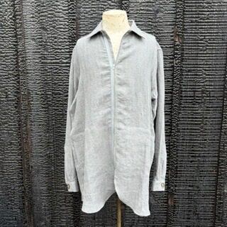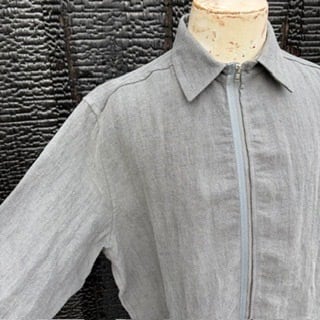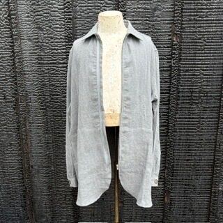 FRANK LEDER “NATURAL DYED HERRINGBONE LINEN ZIP UP SHIRT+SIDE POCKETS(NDHL5)” LIGHT GREY