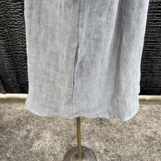 リネン100%のヘリンボーン生地を天然染料で染めています。こちらのグレートーンはイラクサとシダが原料です。天然染料で昔の染め方でもあるため、仕上がりの色がその条件下で明るくも暗くも、バリエーションある色合いになることをご了承ください。また、化学的処理を施していないので、色落ちについては不安定の可能性がありえます。生地のシワや洗いによるケバのような表面は生地の性質であり、これもまた美しいヴィンテージの風合いを醸し出しています。