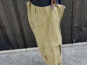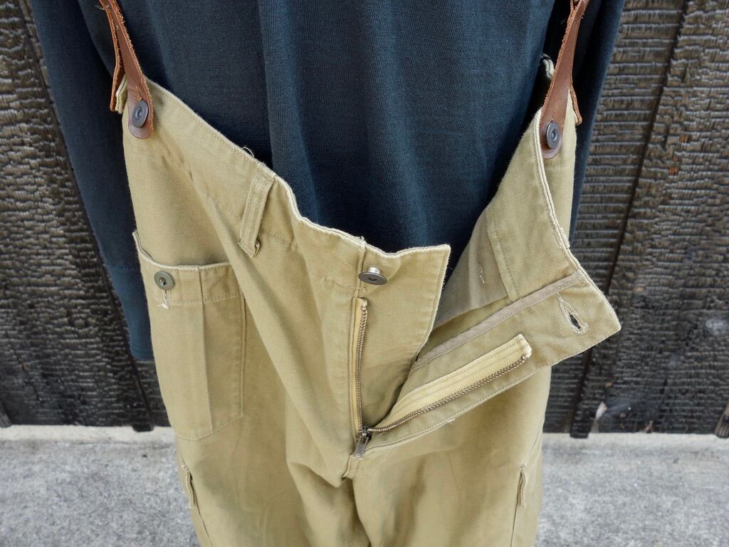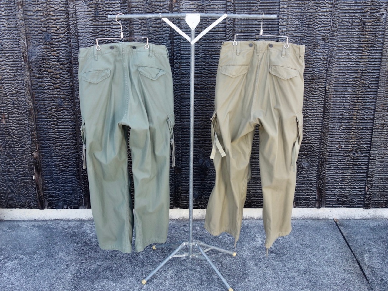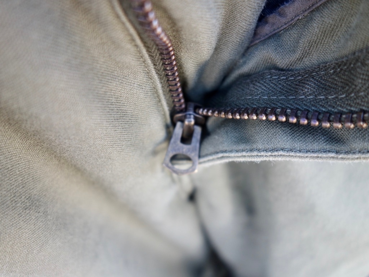米軍のM-43と、カーゴパンツの傑作M-51、そして英国陸軍のビンテージをミックスしたデザインです。ファブリックはバックサテン。非常に剛性の高い組織です。素材はM-51同様にコットン100%。M-51の後継であるM-65では、素材がコットンナイロンに変更となります。些細な素材変更に見えますが実はその背景には大きな事象が隠されています。世界初の合成繊維であるナイロンの発明そのものです。ナイロンは米国で1935年に発明され、ナイロン糸が様々な繊維製品に普及していったのは1950年以降です。つまり、51年制式採用のM-51の時代にはナイロンは存在していたものの未だ物珍しい素材でしかなく、65年採用のM-65の頃には爆発的に普及し、コットンとナイロンの混紡糸が使用されたという事です。合成繊維がごく普通のものである私たちの感覚からするとちょっと興味深い事実です。