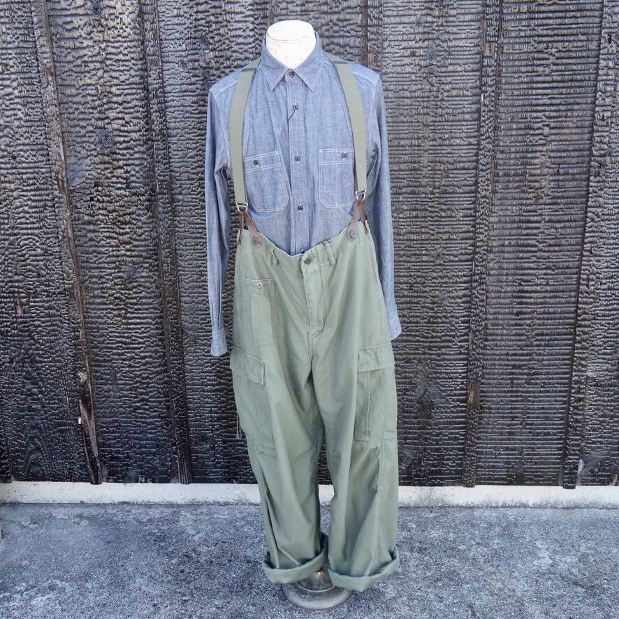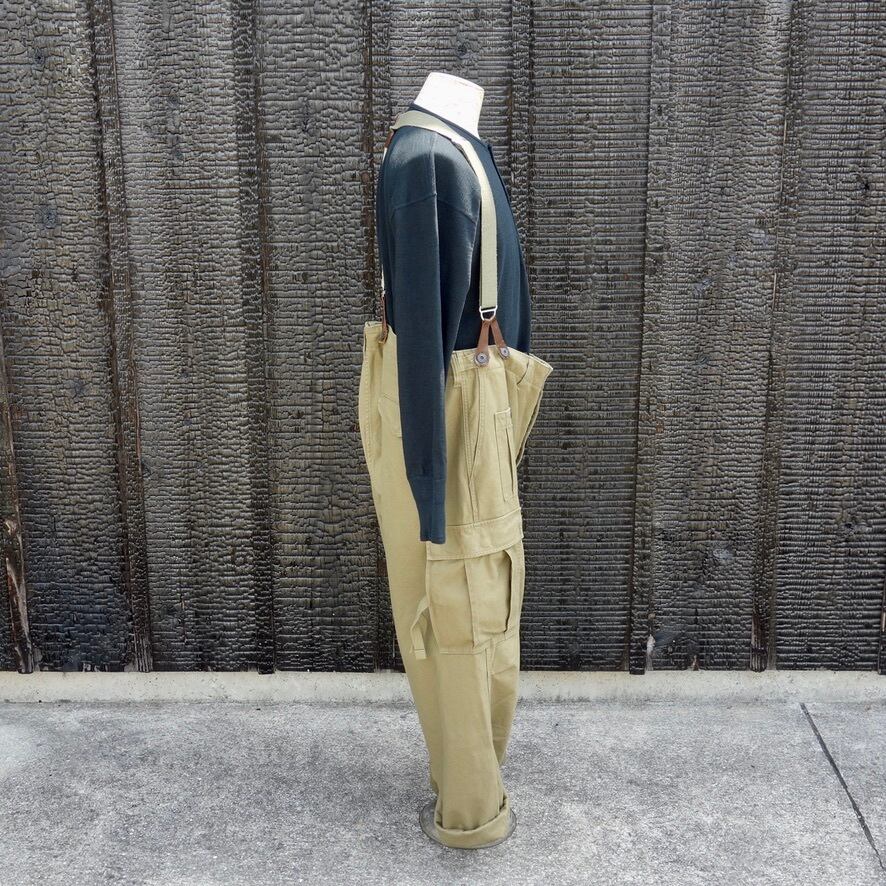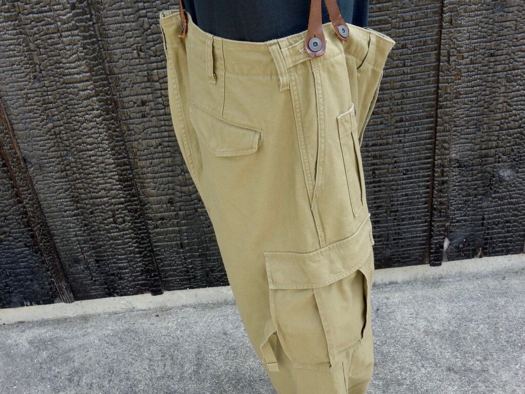 アメリカ代表のミリタリーパンツ "M-51"、イギリス代表の"BRITISH ARMY PANT"(ブリティッシュ アーミー パンツのディテールを見事にいいとこ取りして融合させたミックスパンツとなります。本アイテムの特徴であるカーゴポケットの後部から出し入れできるコードはいざという時(戦闘中の負傷)の "止血帯" であり、カーゴポケットに爆薬やナイフなどの装備品を入れた際のポケットごと固定するのが目的とも言われています。ウエスト周りにセットされているボタンはサスペンダーをセットすることも可能で、クラシックなミリタリースタイルもお楽しみいただけます。