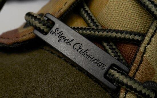 細部にはヘビーデューティーなメタルパーツ、ヘリテージで耐久性のある紐、そしてブラスのナイジェル・ケーボンネームの入ったレースキーパーが挙げられます。