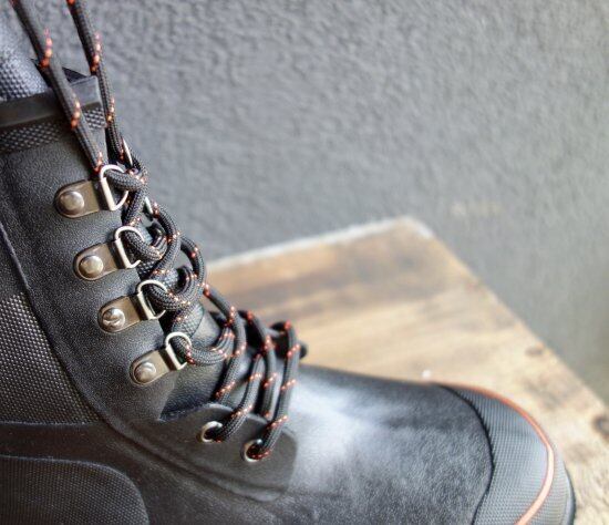 ■ 素材:天然ゴム、ナイロン製のミッドソールとシャンク、金属製トリムとアイレット、EVA ミッドソール