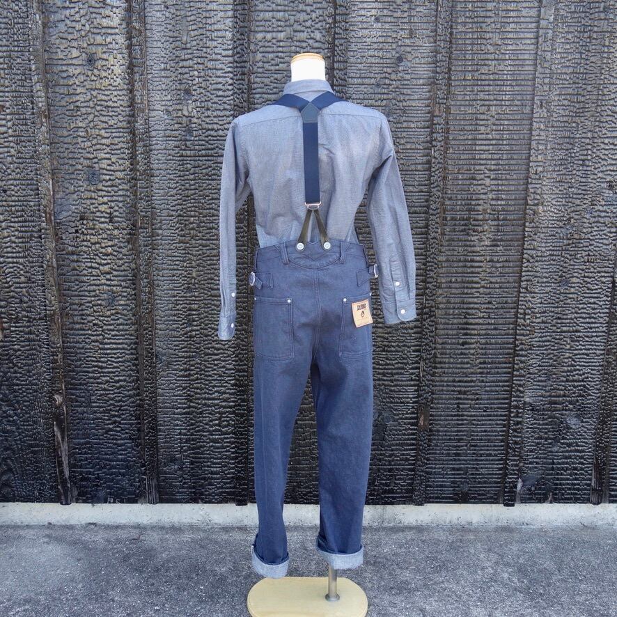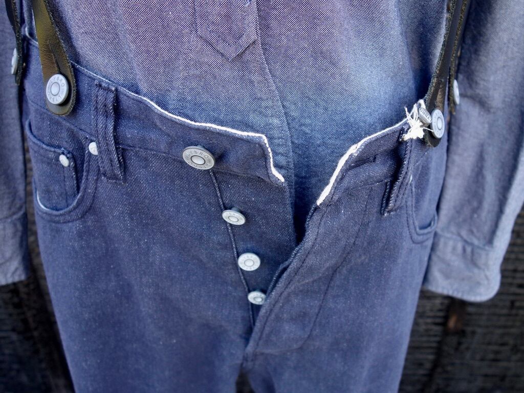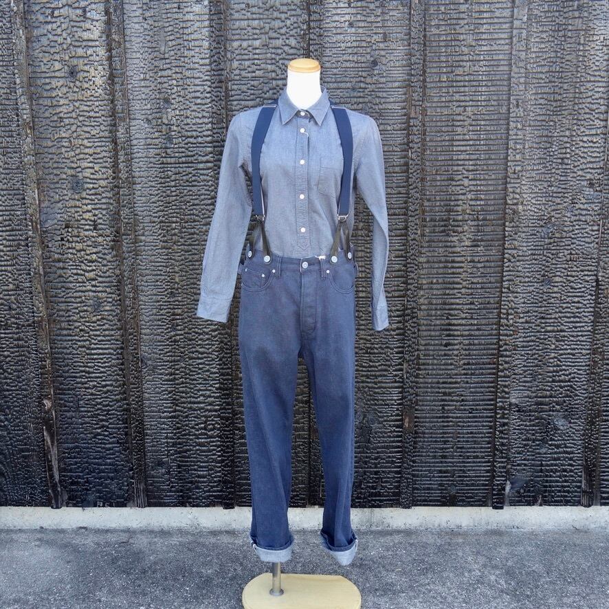 ルーズなシルエットが特徴の5ポケットデニムパンツです。アイコニックなカーブしたバックスリットのデザインは、第二次世界大戦時のアーミーパンツのディテールを採用したもの。両サイドに配されたシンチベルトも勿論ヴィンテージのデザインを再現しています。ボタンフライ仕様で各所のリベットにはブロードアローマークが刻まれるなどナイジェルケーボンらしい拘りが詰まっています。ご覧の通りサスペンダーボタンがはじめからセットされているのでクラシックスタイルにも対応してくれます。