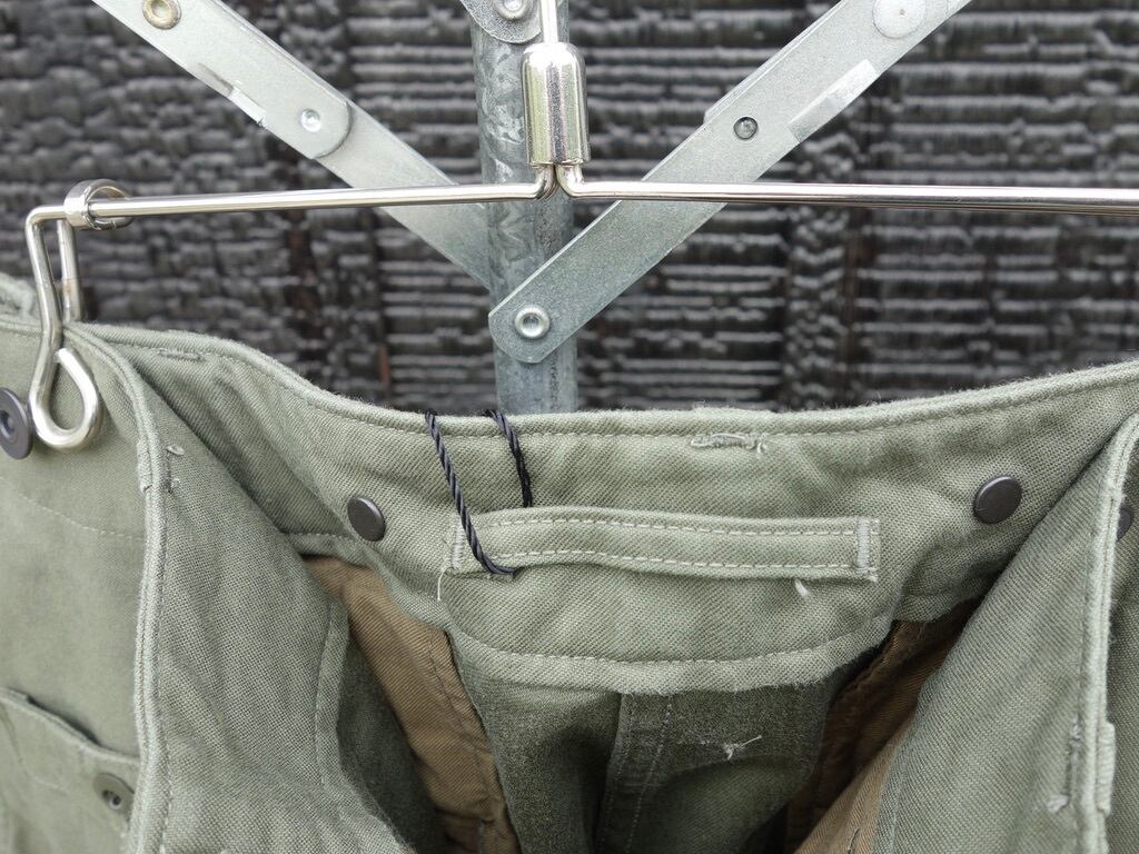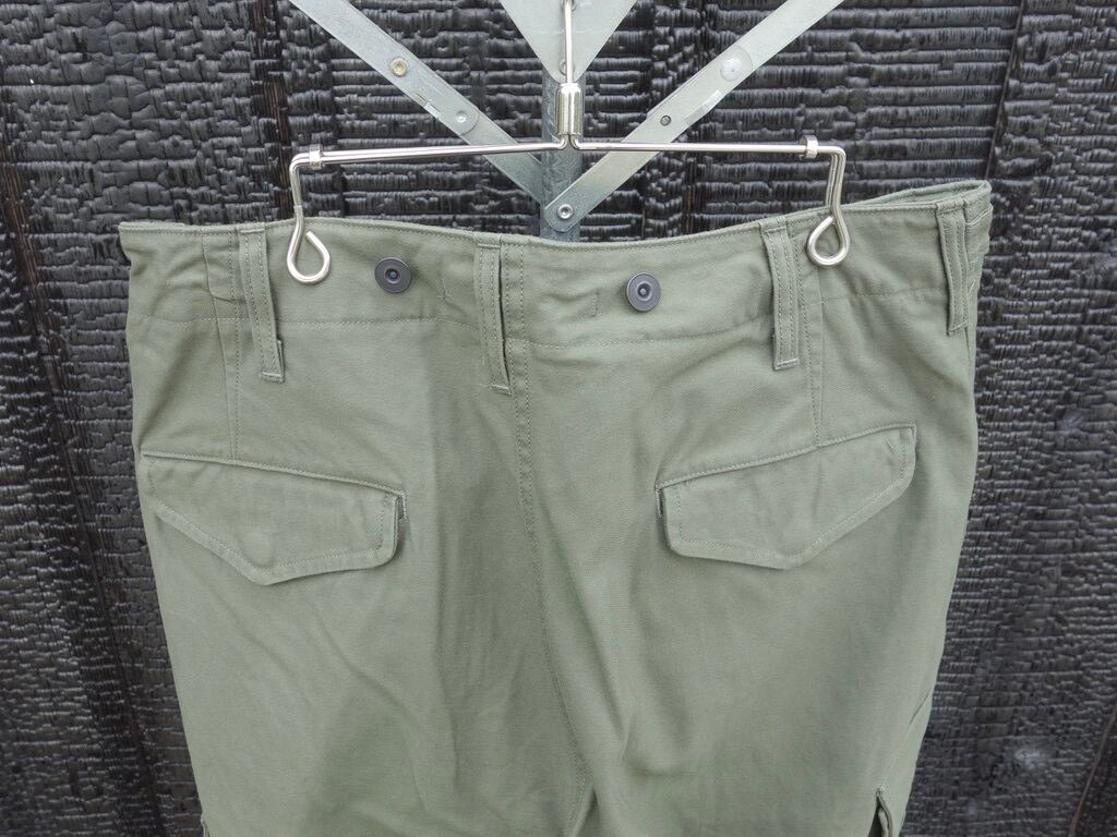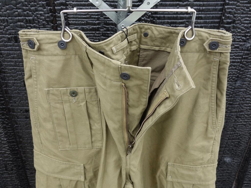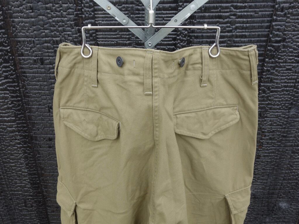 ファブリックはバックサテン。非常に剛性の高い組織です。素材はM-51同様にコットン100%。M-51の後継であるM-65では、素材がコットンナイロンに変更。些細な素材変更に見えますが実はその背景には大きな事象が隠されています。世界初の合成繊維であるナイロンの発明そのものです。ナイロンは米国で1935 年に発明され、ナイロン糸が様々な繊維製品に普及していったのは1950 年以降です。つまり、51年制式採用のM-51の時代にはナイロンは存在していたものの未だ物珍しい素材でしかなく、65 年採用のM-65の頃には爆発的に普及し、コットンとナイロンの混紡糸が使用されたという事です。合成繊維がごく普通のものである私たちの感覚からするとちょっと興味深い事実です。