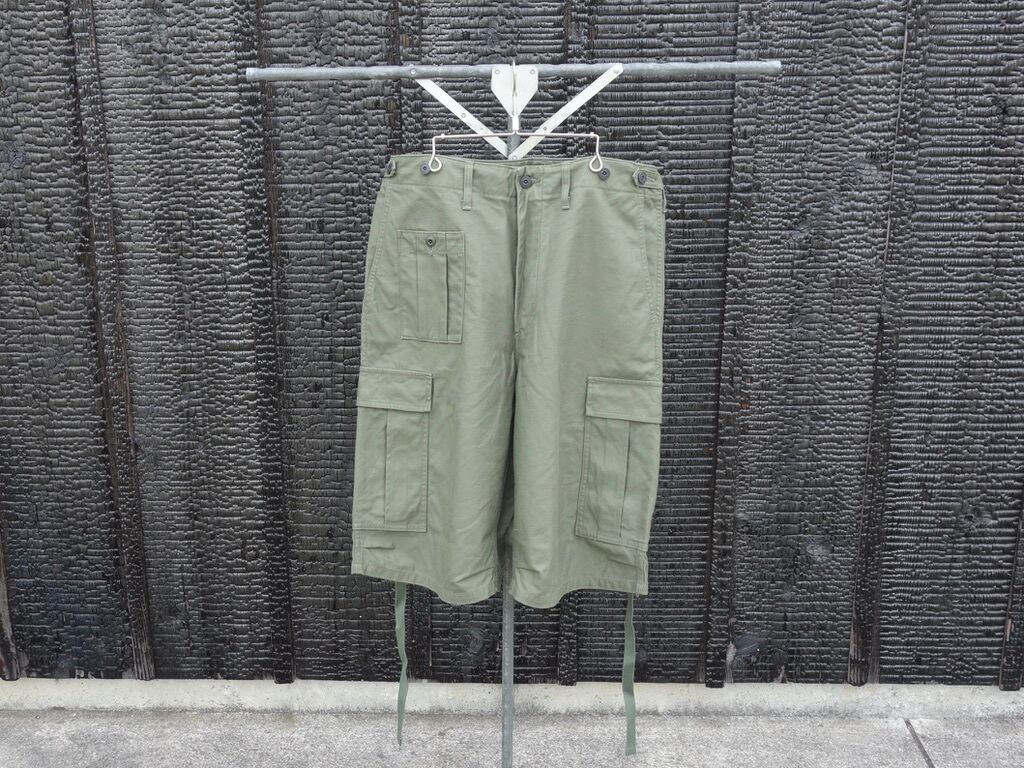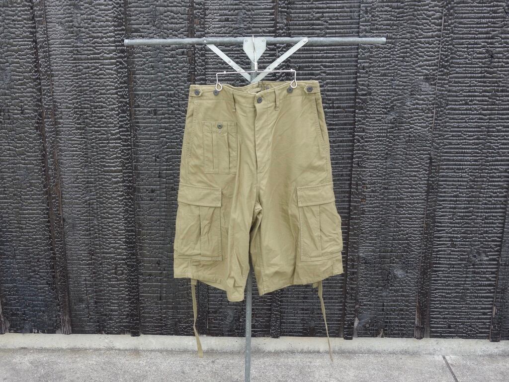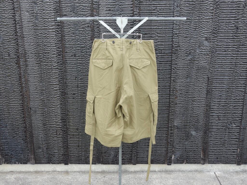 アメリカ代表のミリタリーパンツ "M-51"、イギリス代表の"BRITISH ARMY PANT"(ブリティッシュ アーミー パンツのディテールを見事にいいとこ取りして融合させたミックスパンツのショーツバージョン。本アイテムの特徴であるカーゴポケットの後部から出し入れできるコードはいざという時(戦闘中の負傷)の "止血帯" であり、カーゴポケットに爆薬やナイフなどの装備品を入れた際のポケットごと固定するのが目的とも言われています。ウエスト周りにセットされているボタンはサスペンダーをセットすることも可能で、クラシックなミリタリースタイルもお楽しみいただけます。