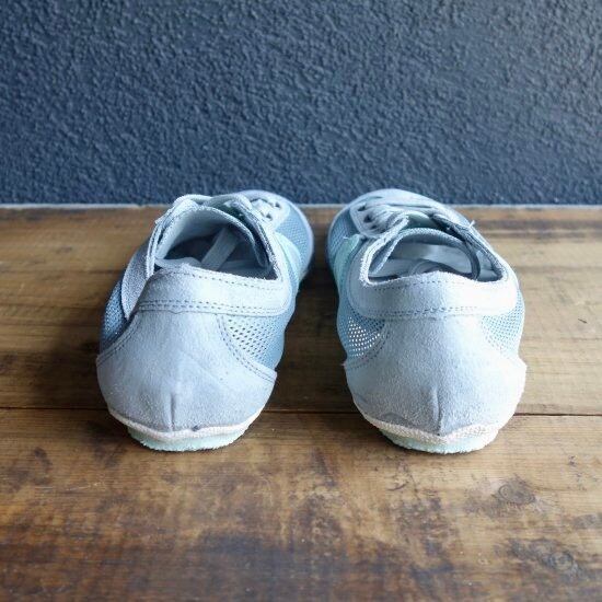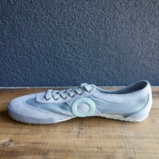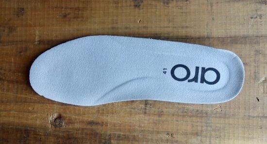 NET(メッシュ)素材をベースに丁寧に作られている印象です。aro(アロ)のロゴマーク(ゴムのような素材)が両サイドとベロの部分にしっかりと縫い付けられています。インソールは着脱可能です。画像でもお判りの通りインソールには厚みがありクッション性の高さを伺えます。見るからに風通しの良い蒸れにくいスニーカーと言えます。アウトソールは波型が刻まれているので滑りにくく、靴下がやや透けて見えるのでご自分の好きなように靴下でアレンジしても楽しめるスニーカーでもあります。