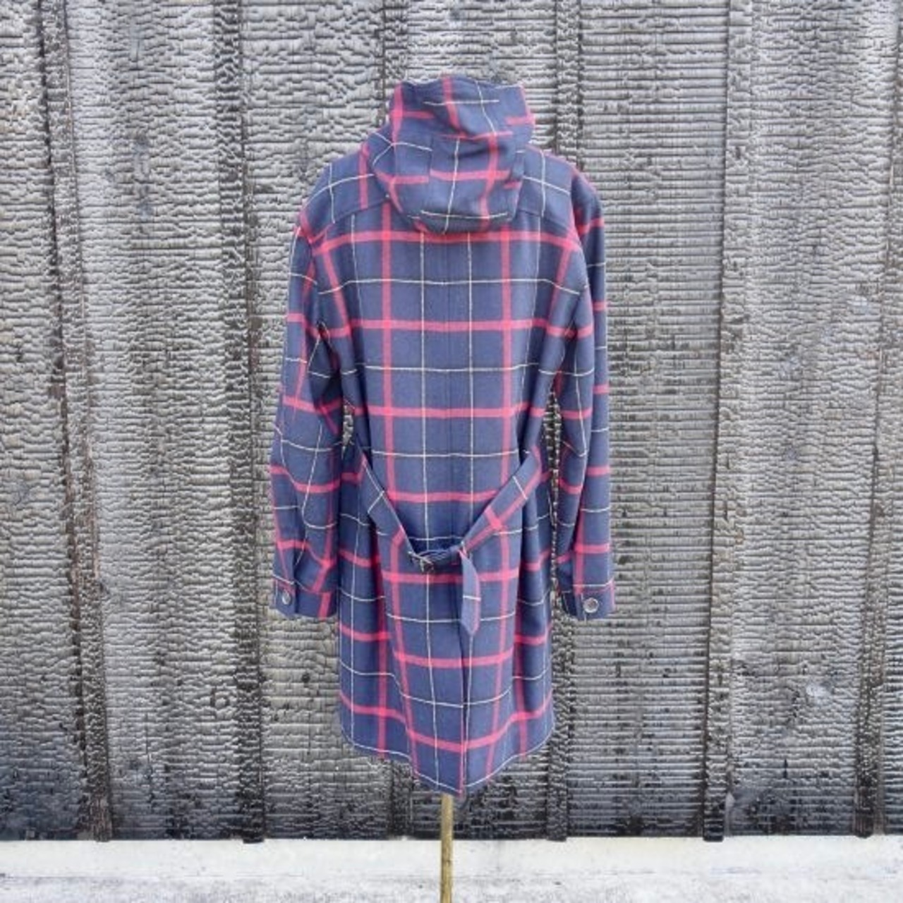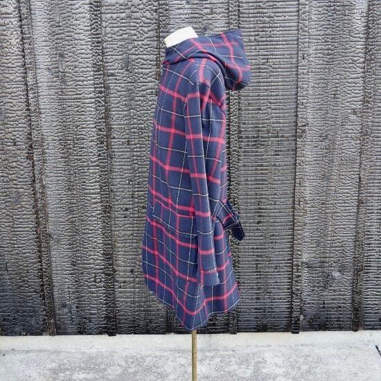 イギリス人の "Oliver Spencer”(オリバースペンサー)がデザインするアシンメトリーなフード付のコートです。前身頃にはYKKのメタルダブルジッパーを左身頃のフラップで覆うので表面からはジッパーを隠しスッキリとした美しいチェック柄をお楽しみいただけます。上胸部と呼吸器系の部分にはボタン留めのフラップが付き、袖口はボタン留めによる開閉式、後身頃の腰部には身幅をある程度調整できるウエストアジャスターがセットされシルエットに変化をつけられるのも魅力的です。ミドルコートの様なパーカーでコーディネートにメリハリをつけたい方などにもお勧めなアウターウェアと言えます。※左胸にはYKKのジッパー付き縦ポケット、フロント下部の左右にはフラップ付の大きなポケット、内ポケット2つが機能的に配されております。