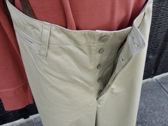 定番のオリジナル素材であるウエストポイントチノはそのままに、SS23シーズンよりシルエットに微量の変更が加えられています。この時期から内側にサスペンダーボタンがセット(最終画像 / ご参考まで)されています。