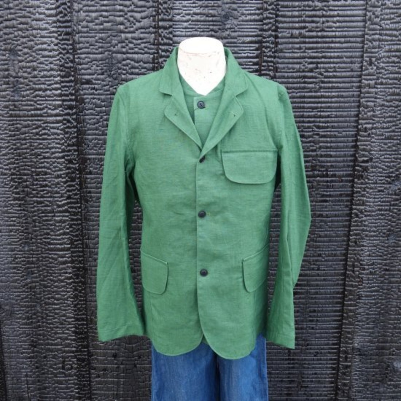麻100%の生地で仕立てられた大きなフラップ式のポケットを3つ配する襟付きのジャケットとなります。襟にはチンストラップがセットされているのでブルゾン的な着こなしも可能です。※出品中の VINCENT GILETと組み合わせると特にVゾーンの相性は抜群で美しい表情を放ってくれるのです。