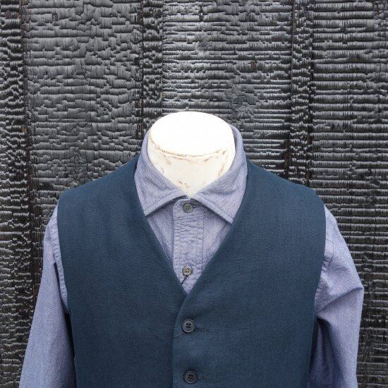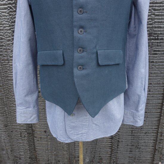 HACKNEY UNION WORKHOUSE "SPITALFIELDS Waist Coat LINEN" Navy