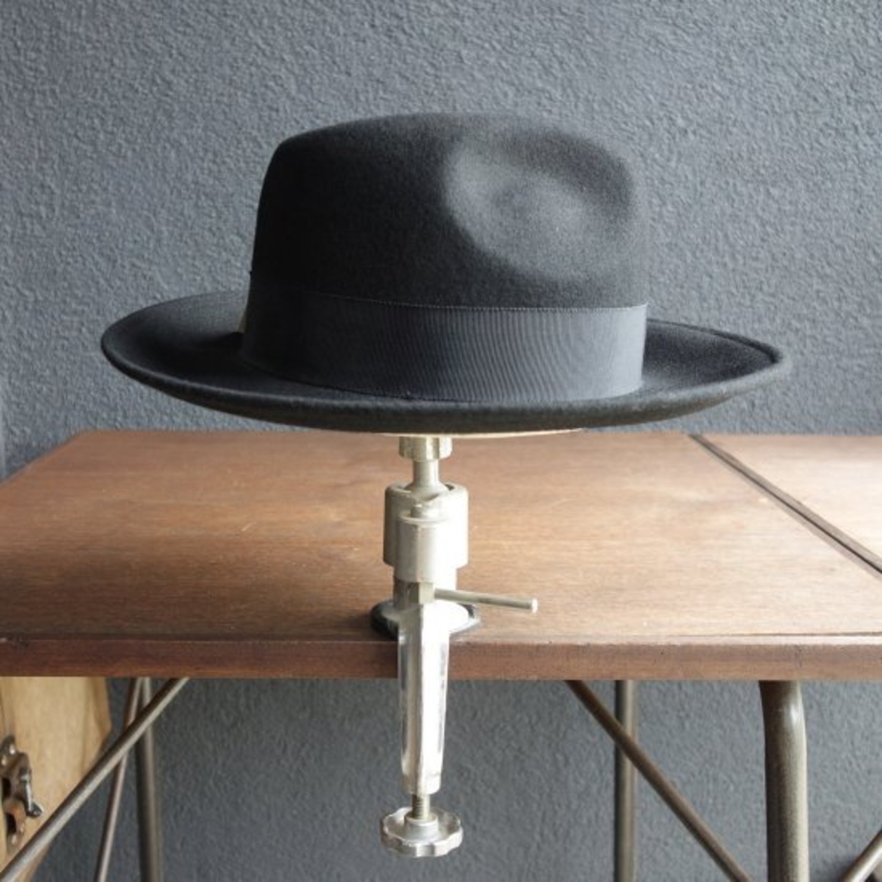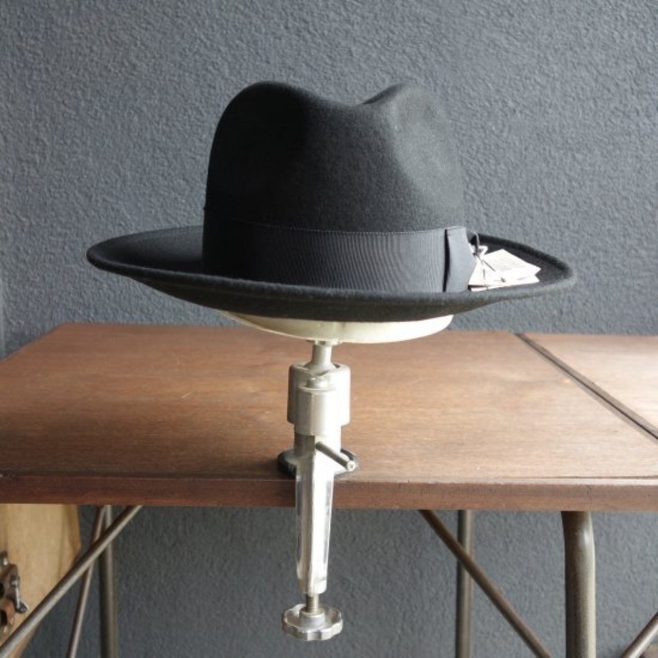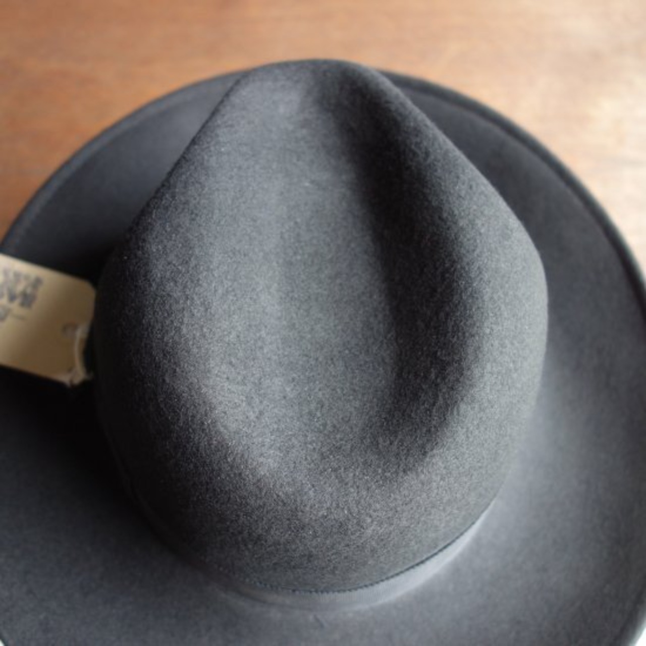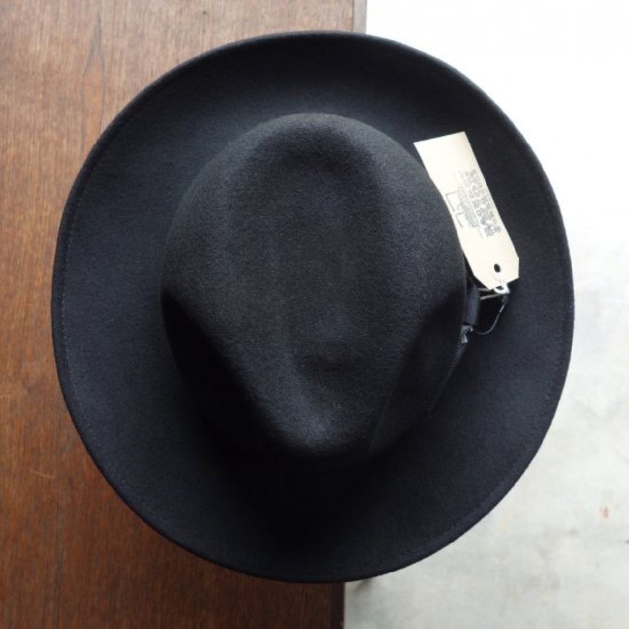 2014AWコレクションのハットです。リボンも主張し過ぎず、ツバは約7 cmほどで程良いサイズ感で、シンプルな姿は紳士的・ややカジュアル的にも被ることができると感じております。このようなハットは初めてという方にもお勧めしたいウールフェルト素材の帽子と言えます。