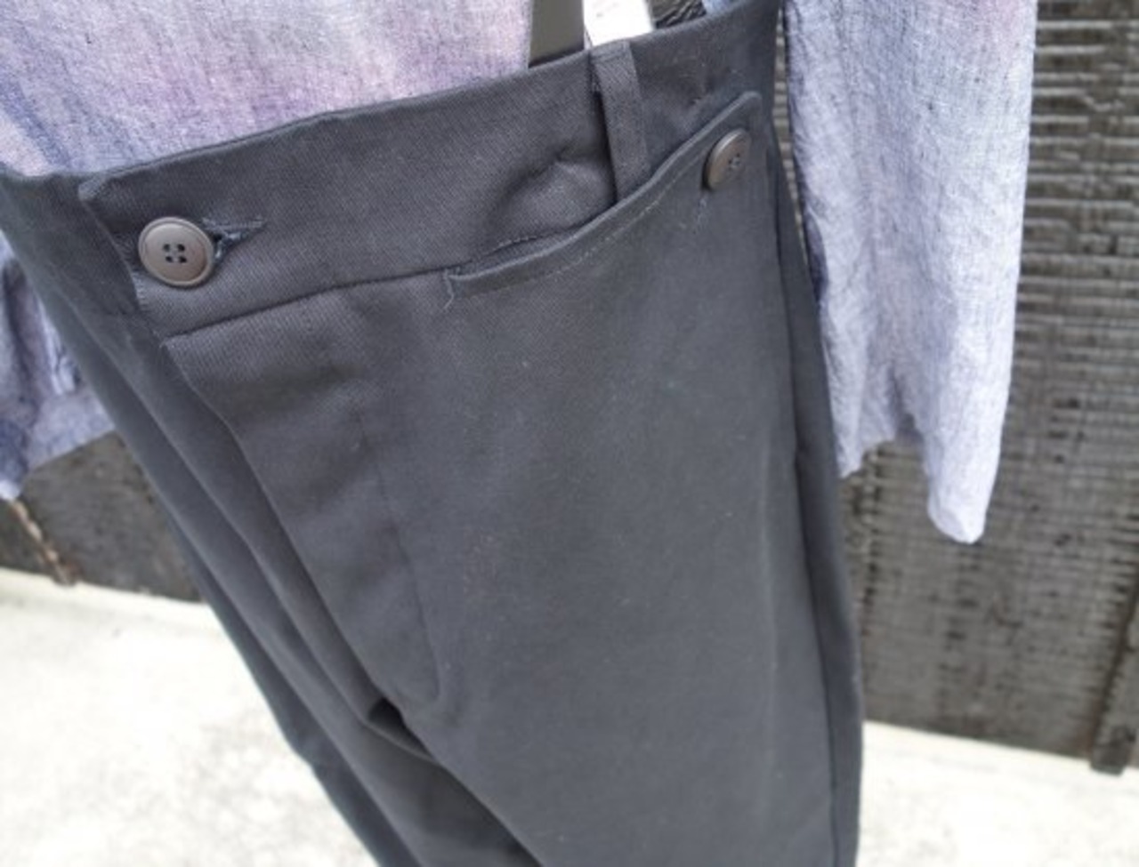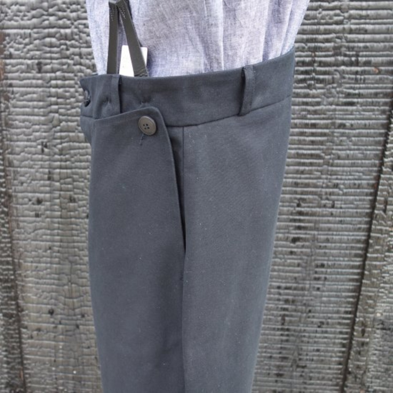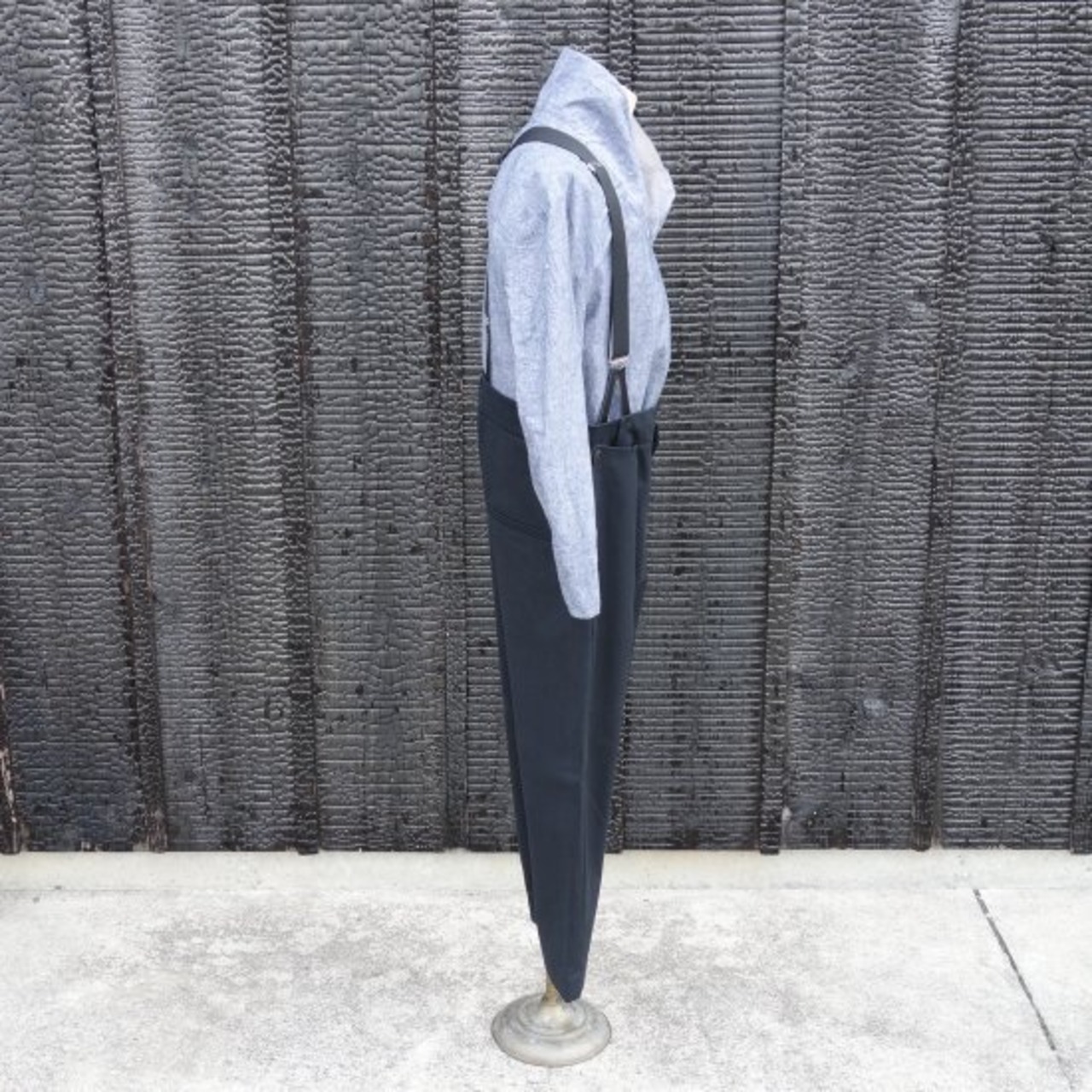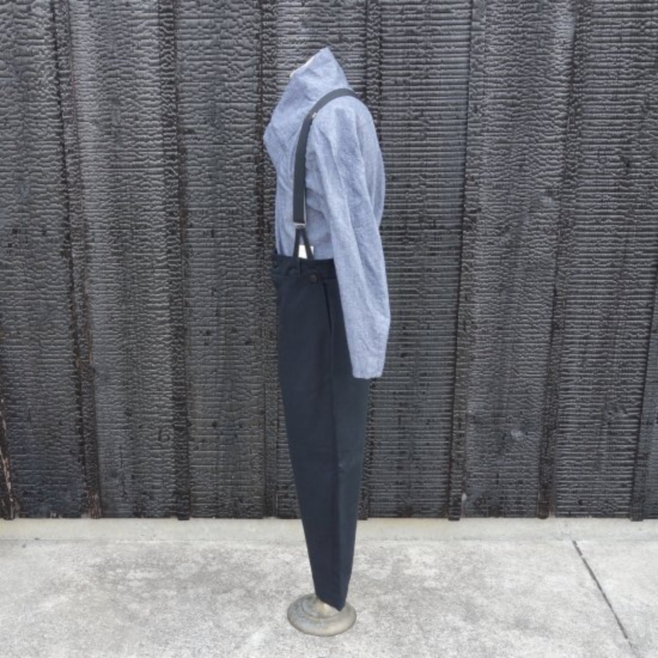 浅めの股上とバックのウェルトポケット、ロバの耳のようなフロントポケットが特徴です。これらのディテールは19世紀に生まれたもので、モダンで細身のシルエットに仕上がっております。サスペンダーボタンが初めから仕込まれているのでクラシックに着こなすことも可能です。ミディアムウェイトの古い英国の機屋で織られたパナマ織コットンで仕立てられています。"Clayton cotton DOUBLE JACKET "とセットアップ着用もお勧めです。
