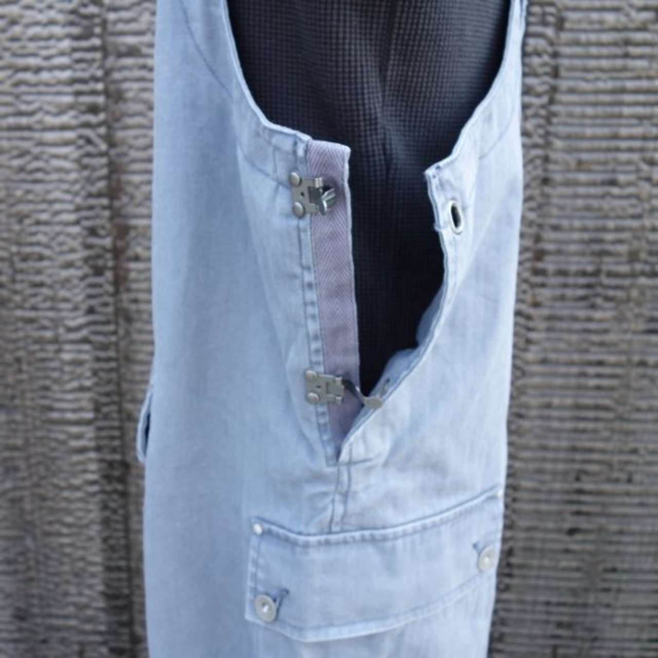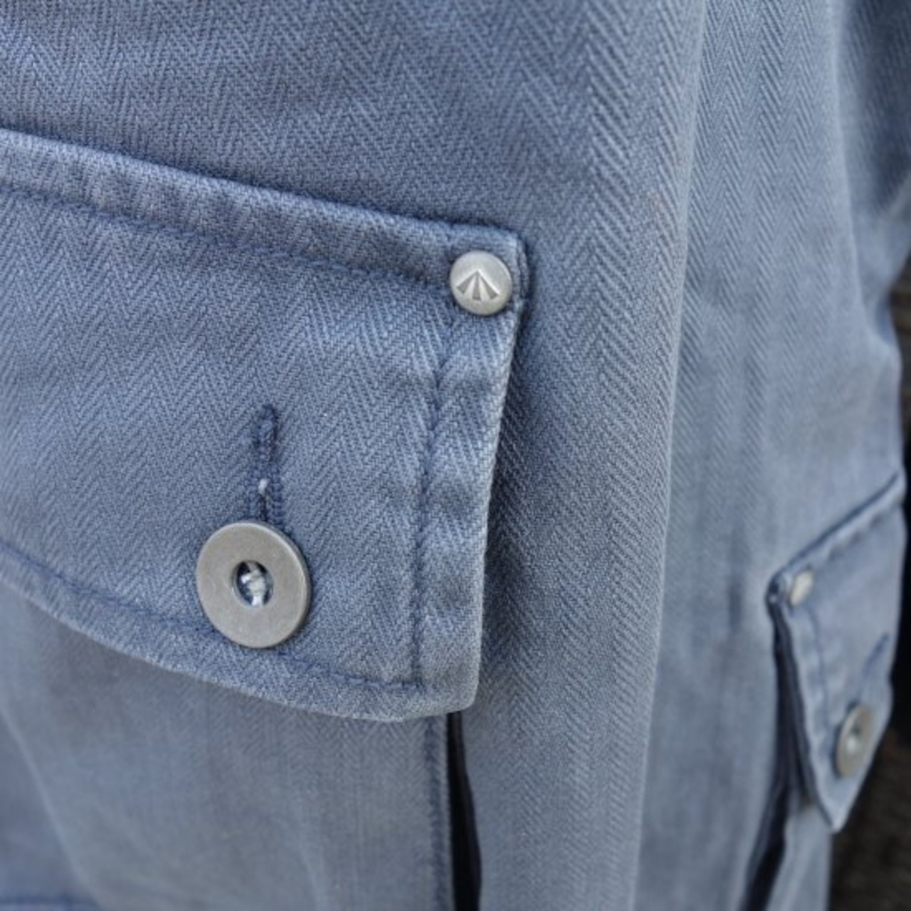 ナイジェルケーボン自身も愛用している1940年代のUS NAVYのDECKパンツをベースにアレンジされています。USMC-M44スタイルのカーゴ&バックポケットのディティールを盛り込んだナイジェルケーボンのオリジナルデザインに仕上がっています。ファブリックには洗いをかけビンテージの質感を忠実に再現したコットンヘリンボーンが採用され、毎シーズン数日で完売する人気物のオーバーオールです。