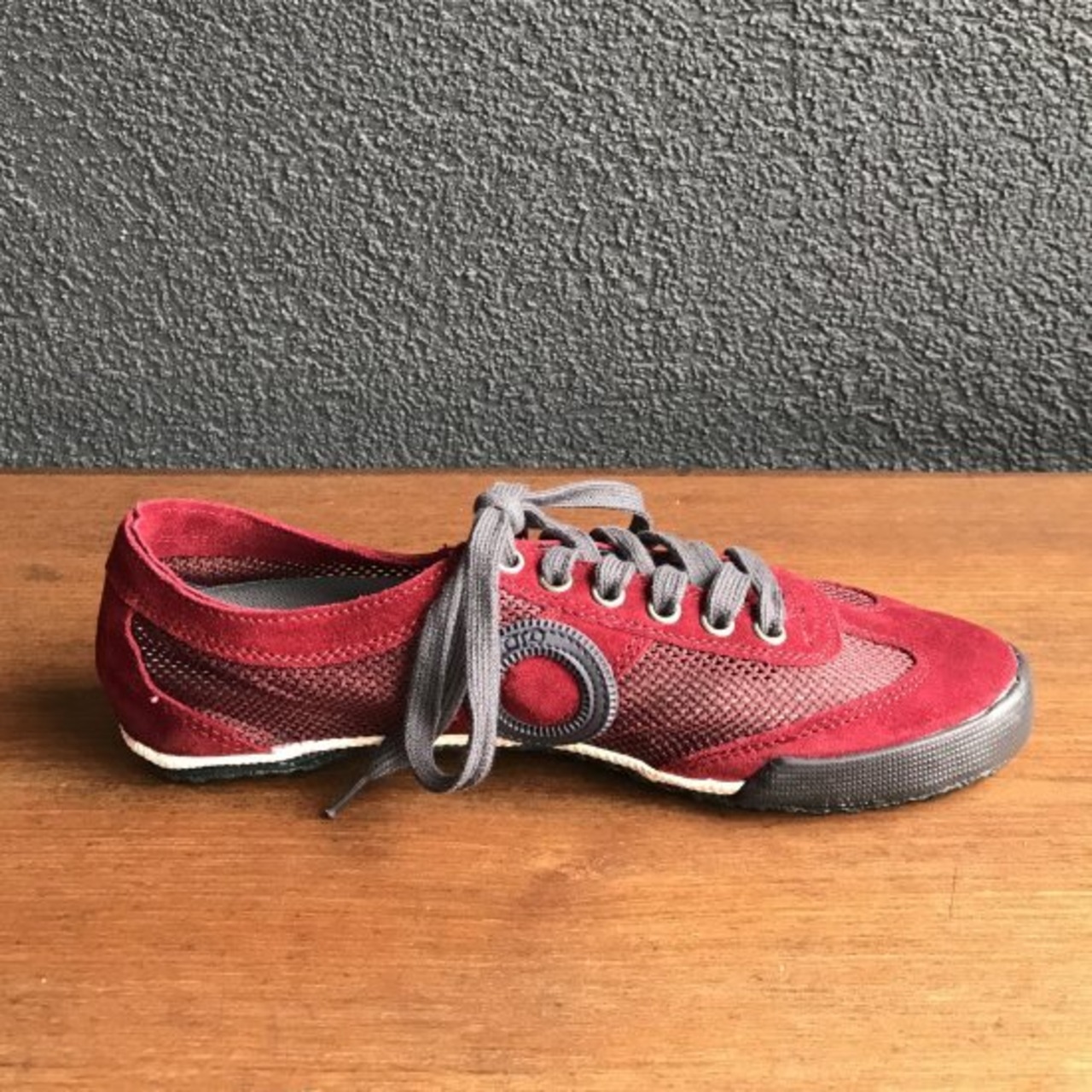 NET(メッシュ)素材をベースに丁寧に作られている印象です!aro(アロ)のロゴマーク(ゴムのような素材)が両サイドとベロの部分にしっかりと縫い付けられています。インナーソールは着脱可能です。画像でもお判りの通りインナーソールには厚みがありクッション性の高さを伺えます。また、インナーソールの一部分に通気孔が設けてあり、全体的に風通しの良い蒸れにくいスニーカーと言えます。アウターソールは波型が刻まれているので、滑りにくく、靴下がやや透けて見えるのでご自分の好きなように靴下でアレンジしても楽しめるスニーカーでもあります。